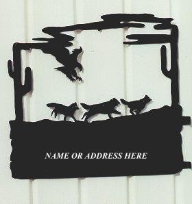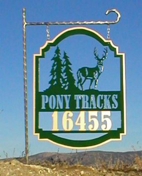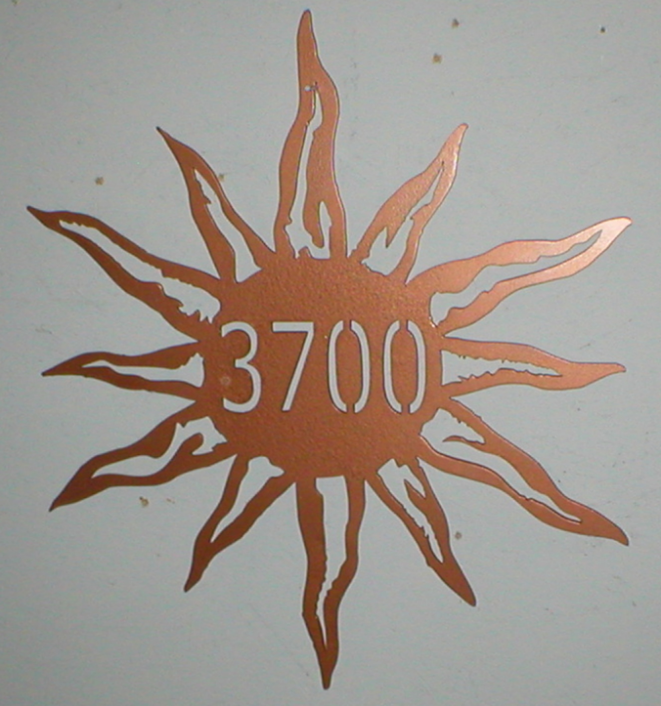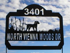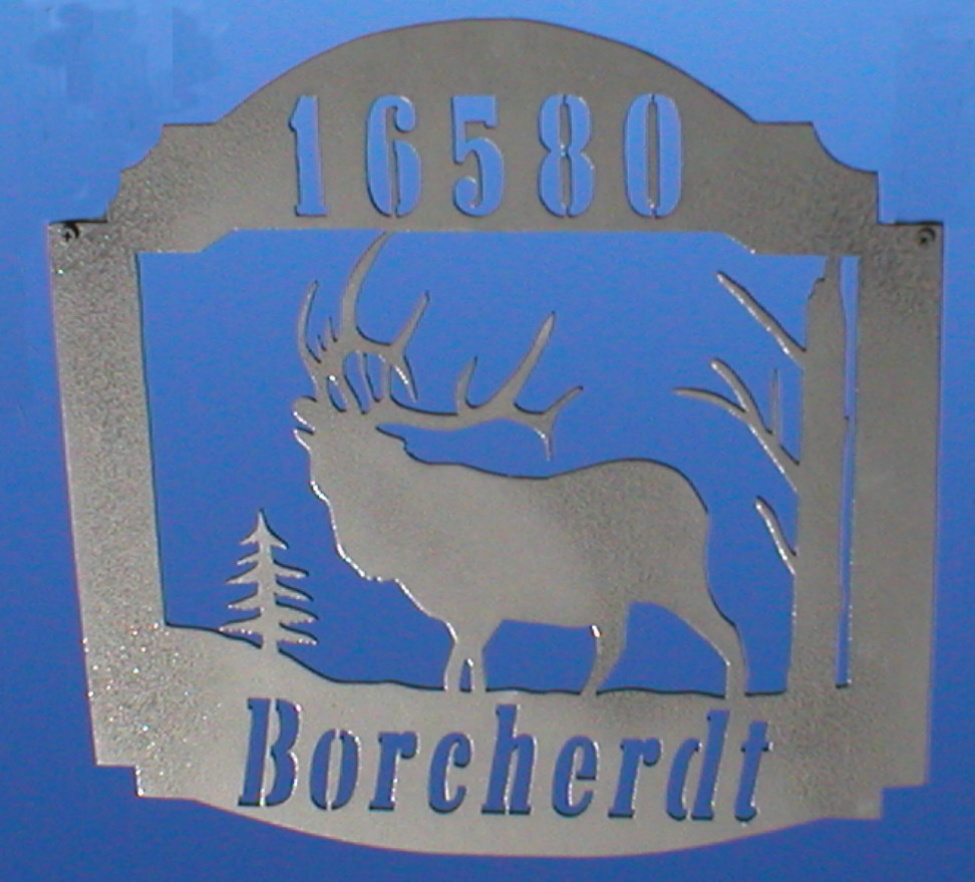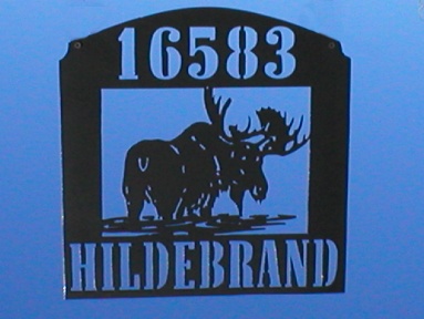 | All custom signs are made from 11gauge steel (1/8th inch thick). Letters or numbers are approx. 3" high depending on the design. Signs come with holes drilled for mounting, but no mounting hardware is included. |